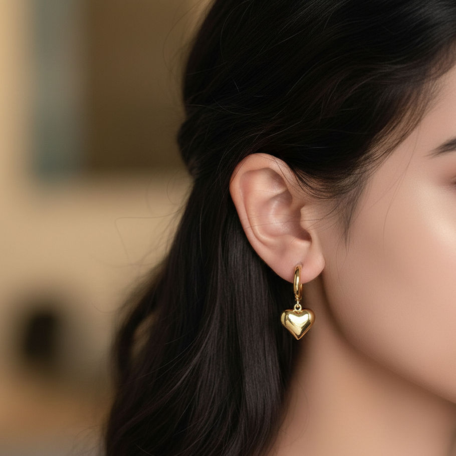You deserve this—the Heartfelt Gold Drops Earrings from DazMeUp, where 18K gold-plated puffed hearts sway from sleek gold huggies, giving these drops a smooth, modern shine that still feels romantic. Light on the ears and high on polish, they are your go‑to pair for everyday outfits, coffee dates, and all the little moments you want to feel a touch more special. Delicate yet dazzling, they're your perfect present to yourself or someone special. Anti-tarnish, hypoallergenic—your dazzling-with-love sparkle.